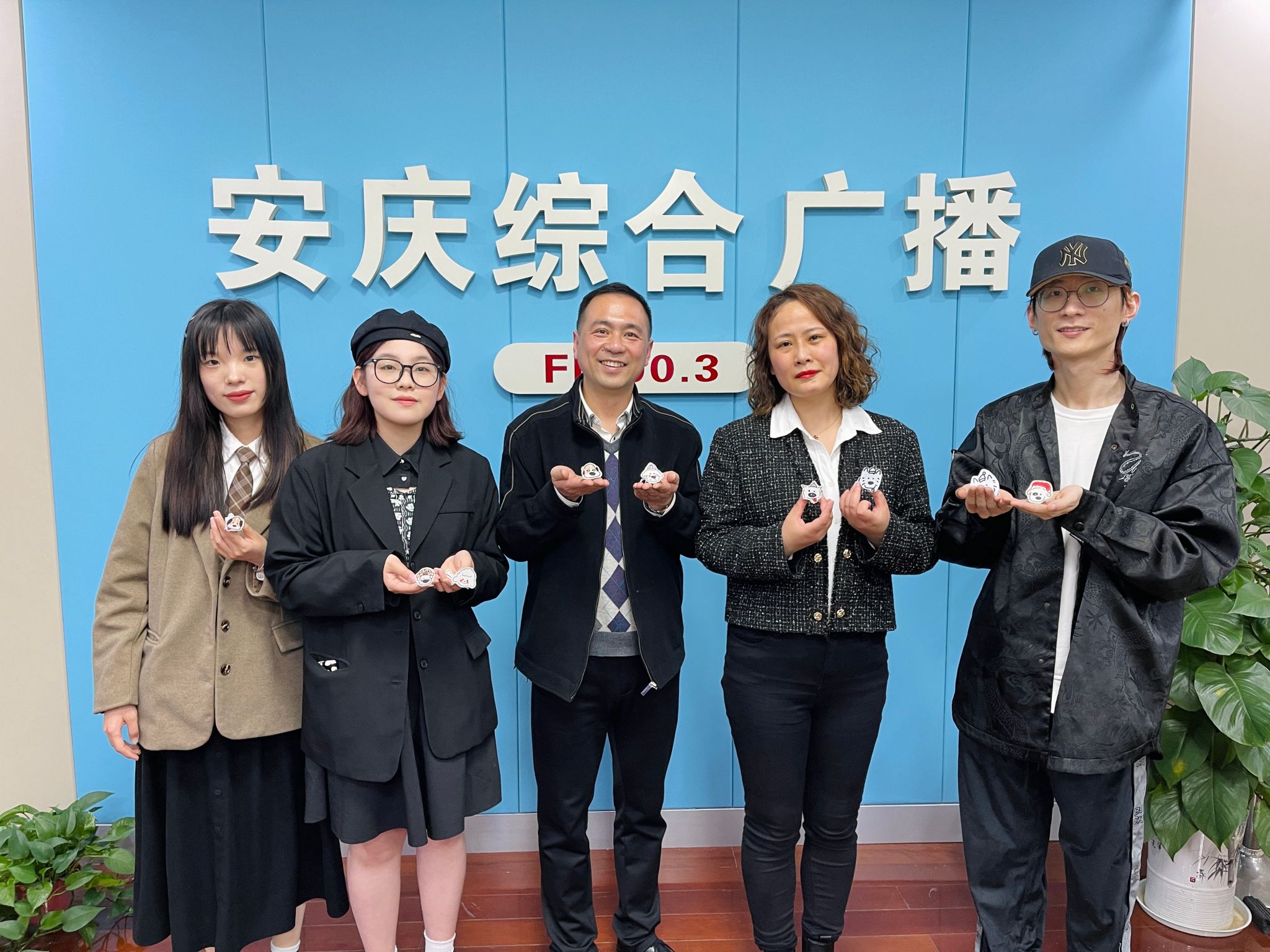 新学期开学,304永利集团4名员工筹划的“小狗送温暖”活动受到各类媒体的广泛关注,产生了良好的社会反响。4月3日,美术公司党委副书记金忠良和2名员工代表受邀做客安庆综合广播《宜城晚高峰》节目,该节目还同步于安庆综合广播电台微信、抖音的直播间。