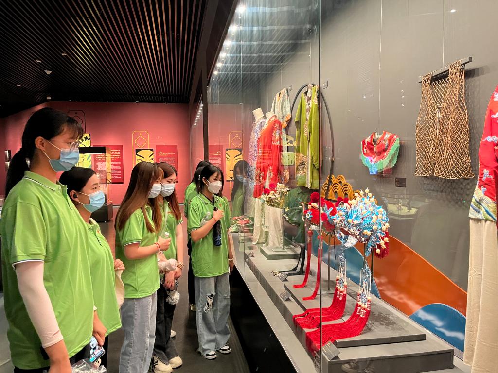浩如烟海的历史资料、精雕细刻的文物藏品、身临其境的体验方式……黄梅戏艺术陈列馆内幻影成像、大型触摸屏等现代展示设备,生动地展现了作为国家非物质文化遗产的黄梅戏的前世今生。队员们借助现代科技观赏黄梅戏经典表演片段,学习黄梅戏表演的服饰妆容特点,同时全面了解了黄梅戏的发展脉络并亲身体验表演黄梅戏。