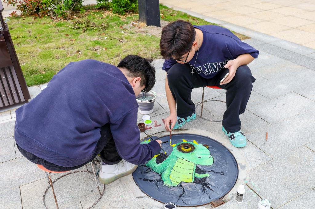 “早在半个月前,我们就开始为活动做准备。”动画专业2020级的蒋旭作为活动负责人介绍,从活动策划到材料采买,自己和团队多次商讨,力求做到“面面俱到”,“我们准备了充足的绘画材料,希望员工们都能积极参与其中,用创意井盖画为校园增添一抹靓丽的色彩。”
