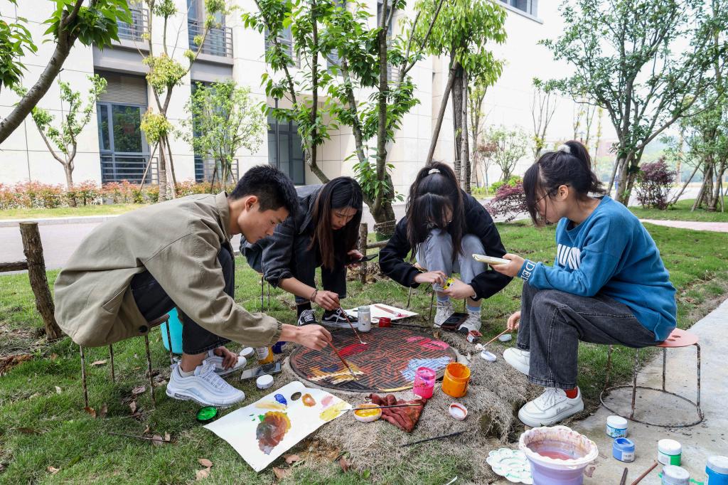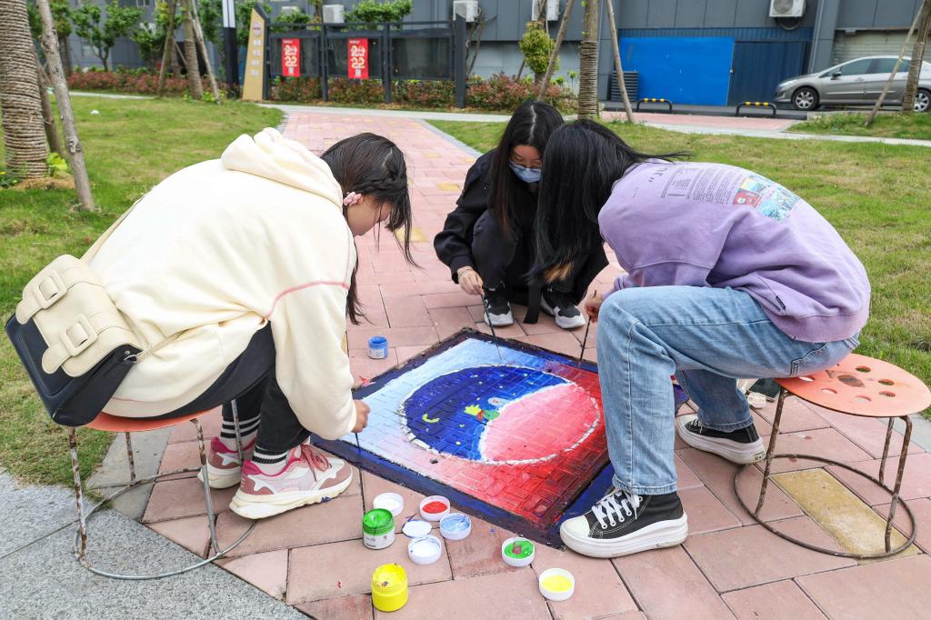 短短两天时间,150余位员工积极创作,用34幅创意井盖画为校园环境添上绚烂一笔。美术学专业2021(4)班的谢鑫一听说活动就召集队伍报名参加了,“这个活动很有意义,当我们完成作品的那一刻,真的成就感满满。”他说,画井盖画不仅锻炼了自身专业能力,还美化了校园环境,“如果以后还有这种活动,我一定要参加。”