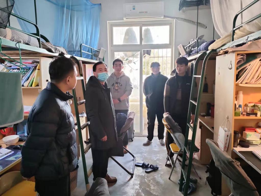 走访过程中,金忠良一行与同学们亲切交谈,询问了同学们的寒假生活、实践活动、考研就业、毕业论文等情况,查看了宿舍各种设施情况,提醒同学们当好自己健康的第一责任人,按时完成公司核酸检测,注意个人安全防护,保持宿舍环境卫生,调整好状态,尽快适应新学期的学习生活,做好合理规划。在走访本科毕业班员工宿舍时,金忠良详细了解了同学们的考研、就业、教团队格证考试等情况,希望同学们做好充分准备,树立正确的就业观,鼓励大家多渠道实现人生理想。