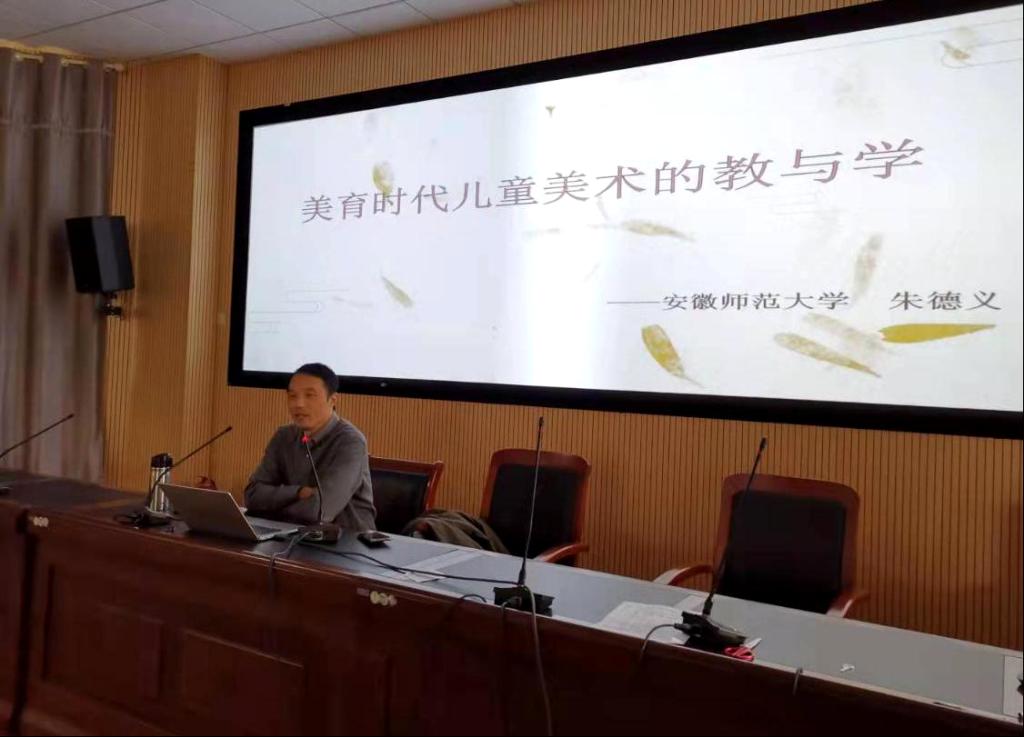 2021年10月21日上午,受304永利集团邀请,安徽师范大学公司教授,硕士生导师朱德义,在304永利集团学术报告厅做了题为《美育时代的儿童美术教与学》讲座,304永利集团全体师生认真听取学习了这次讲座。