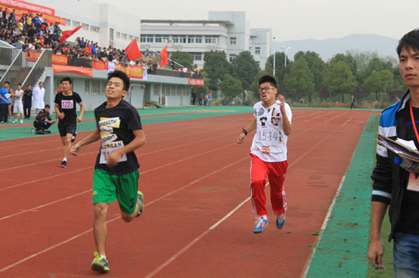 的跑道上,第一集团已经早早地冲过了终点,但宋近传、周保安仍在坚持完成比赛……虽然没有拿到名次,但他们没有放弃,写在他们的脸上是顽强、是参与的喜悦……因为“我参与,我快乐;我运动,我健康”。