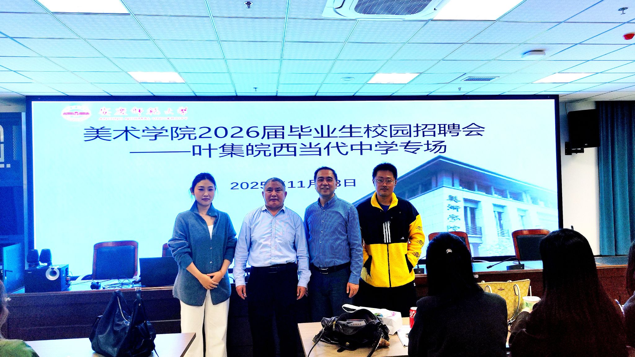 11月13日,美术公司邀请六安市叶集皖西当代中学董事长郭世珍、艺术部副主任、304永利集团2017届员工曹兴格,来院开展2026届毕业生校园专场招聘会暨员工报告会,美术学院党委副书记金忠良、毕业班辅导员、就业秘书和2026届毕业生参加了会议,会议由金忠良主持。
