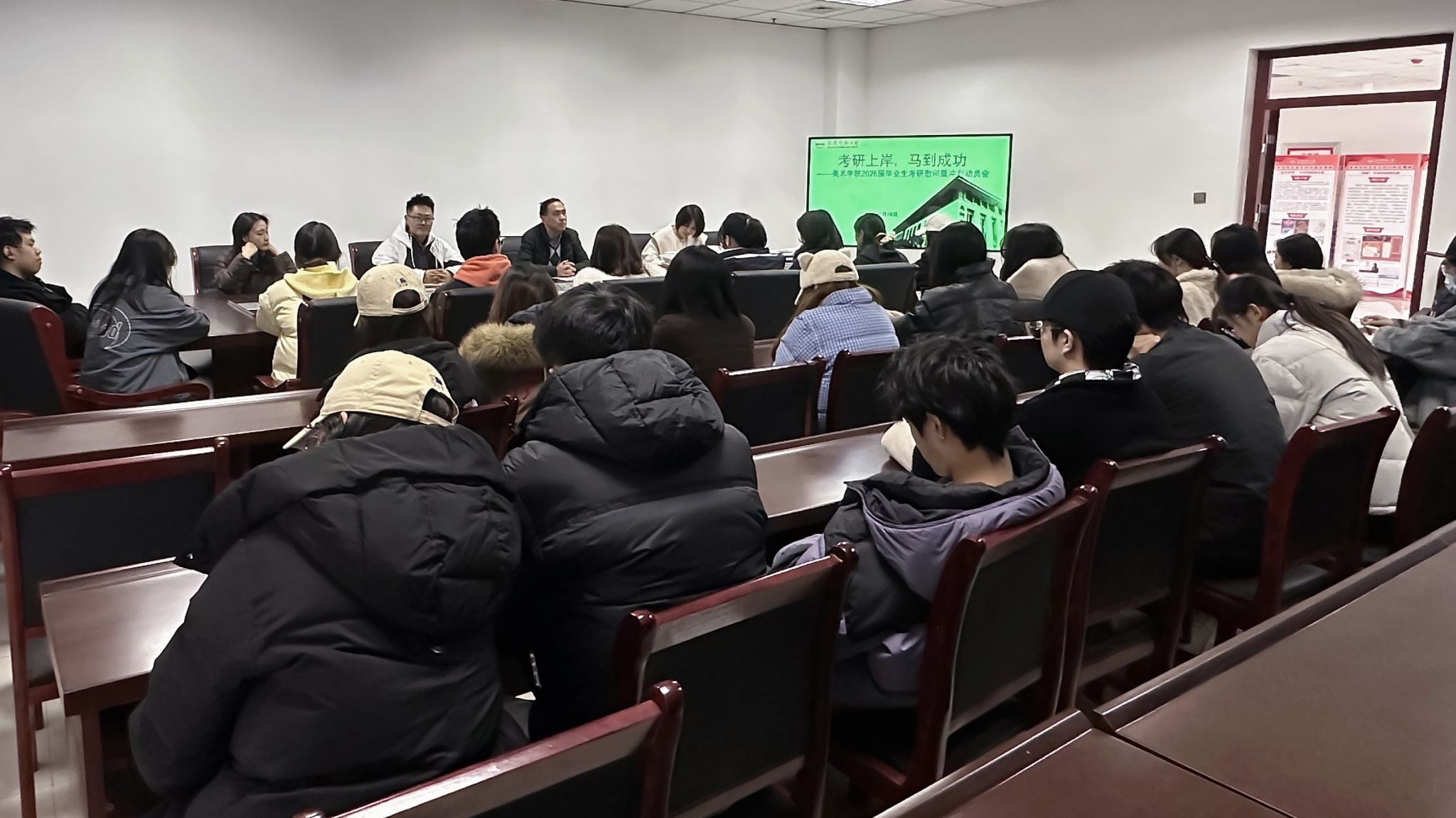 12月10日,公司举办“考研上岸,马到成功——2026届毕业生考研慰问暨冲刺动员会”,美术公司党委副书记金忠良、全体毕业班辅导员、就业秘书和2026届毕业生考研学子参加了会议,会议由金忠良主持。