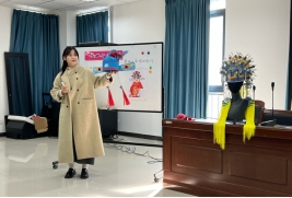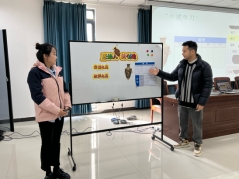 大赛现场气氛热烈,参赛同学们精神饱满、准备充分。他们通过精彩的教学设计、生动的教学演示和巧妙的课堂互动,展现了扎实的专业知识和出色的教学能力。在模拟课堂教学环节中,同学们结合美术学科的特点,运用多媒体教学手段,将艺术之美传递给每一位 “员工”。有的同学以细腻的笔触引导员工欣赏经典画作,有的则通过创意十足的手工黄梅戏盔帽制作激发员工的创造力,充分展示了美术教育的独特魅力。