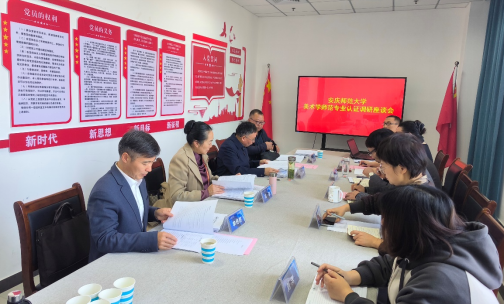 调研中,校领导和专家共同听取了美术学(师范)专业前期自评自建情况的简要报告,认真查阅了认证申请材料,并就充实人才需求调研报告、完善毕业要求指标点、优化课程体系与课程矩阵等方面提出了明确的改进建议。