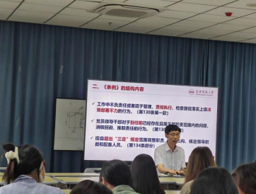 孙根华从深刻领会新修订的《中国共产党纪律处分条例》重要意义、全面准确把握《条例》的结构内容、严格执行和维护党的纪律等方面为大家作了详细地解读。强调要严明政治纪律和政治规矩,坚决维护党中央权威和集中统一领导,深刻领会“两个确立”的决定性意义,坚决做到“两个维护”。要严明党的组织纪律,不断强化党员意识,做到对党忠诚老实,光明磊落;同时,结合公司师德师风建设和员工管理工作实际,孙根华还从廉洁纪律、群众纪律、工作纪律、生活纪律等方面,结合条例的具体内容开展了警示教育,教育师生党员要守住党纪党规红线,严守纪律,砥砺作风,要把学纪、知纪、明纪、守纪融入日常工作、学习和生活中,鼓励广大师生在新时代新征程上为304永利集团发展和中国式现代化作出新的贡献。