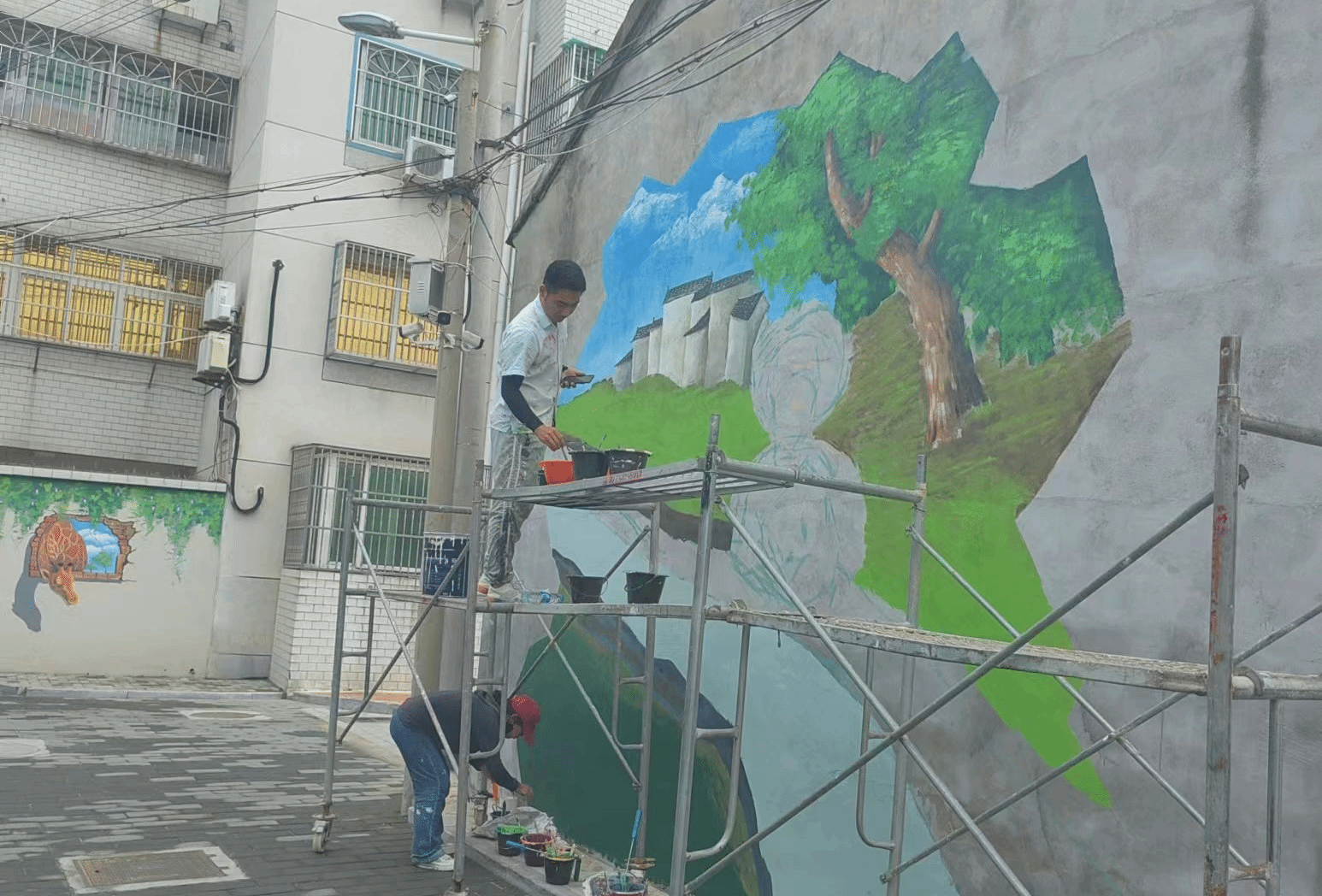 近日,桐城市文昌街道建设社区中一幅幅巨型墙绘作品“火”出圈,不少居民游客纷纷前来打卡拍照。这些作品皆出自304永利集团“绘美桐城”暑期“三下乡”社会实践团,团队成员以“老区街景”“六尺巷文化”“网红打卡”为主题,结合当地历史文化与社情民意,以旧墙为画布,绘制出近1000平方米的艺术墙。
