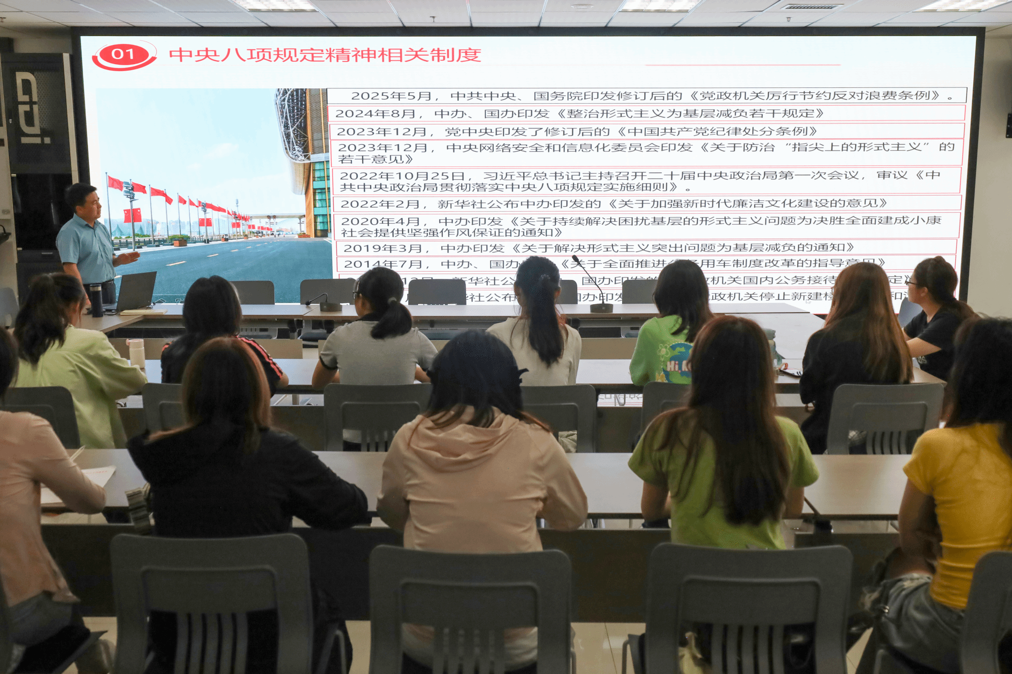 党课上,张辉从三个方面展开讲述。深化作风建设,严守纪律底线。八项规定是党自我革新、自我净化的关键举措,彰显了党对作风建设的高度重视以及全面从严治党的坚定决心,员工党员要严明各项纪律要求,时刻保持警醒。牢记新时代使命,勇担复兴重任。在全面建设社会主义现代化国家新征程上,每一位党员都要胸怀“国之大者”,要以中央八项规定精神为镜,严于律己、脚踏实地、勇挑重担。激扬青春力量,争做时代先锋。青年人作为国家的未来、民族的希望,在新时代肩负着特殊的时代使命和责任担当,要从务实清廉、厉行节约、挺膺担当等方面发挥先锋模范作用,做到“有理想、敢担当、能吃苦、肯奋斗”。