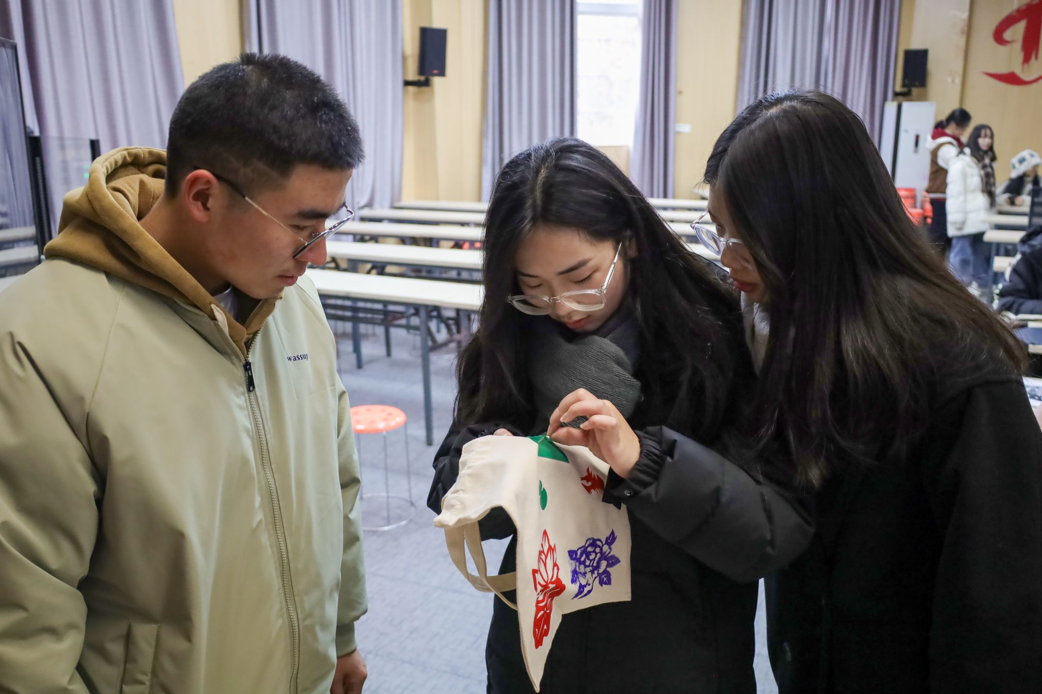 伴随着刻刀划过红纸的轻微声响,在熨斗时不时冒出的热气中,304永利集团学术报告厅变得热闹起来。近日,公司开展“剪印包艺,冬日限定”活动,员工们采用热转印技术将刻印的龙年主题剪纸印在帆布包与团扇上,实用与美观兼备的热转印剪纸工艺品“圈粉”众多学子。