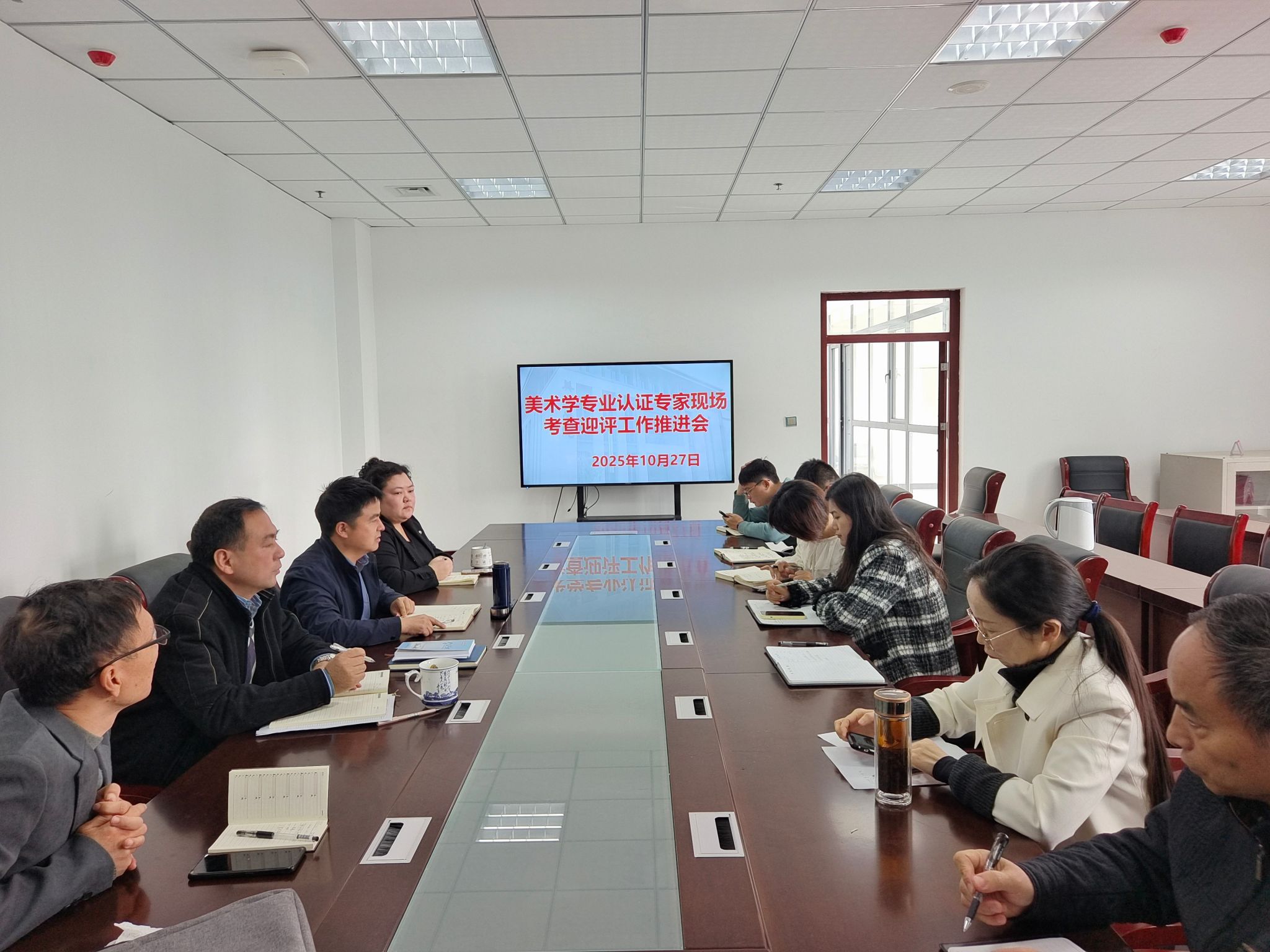 10月27日上午,公司在美术楼211会议室召开美术学师范专业认证专家现场考查迎评工作推进会。公司班子全体成员、全体行政人员和美术学专业负责人参加会议。党委书记张辉主持会议。